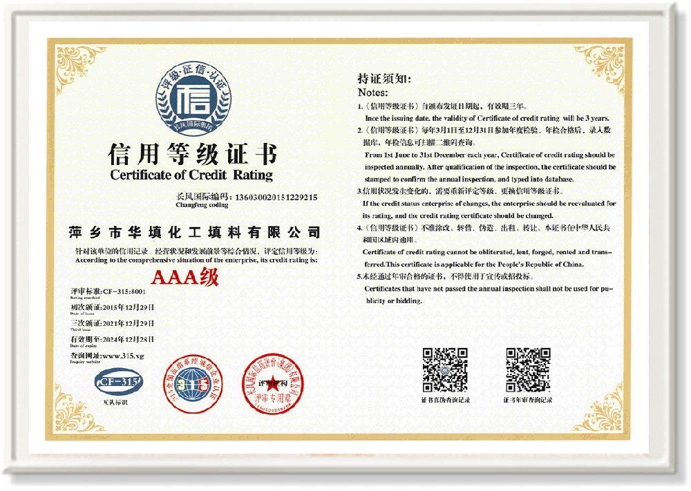 萍鄉(xiāng)市華填化工填料有限公司,位于320國(guó)道、109國(guó)道、浙贛鐵路、昌金高速公路貫穿其中,交通便利,是江西西部一顆燦爛明珠,創(chuàng)建于20世紀(jì)70年代初期,是中國(guó)石油天然氣股份有限公司“能源一號(hào)網(wǎng)”會(huì)員企業(yè)、中國(guó)石化物資采購(gòu)電子商務(wù)網(wǎng)絡(luò)和中國(guó)海洋石油總公司采辦業(yè)務(wù)系統(tǒng)成員單位,是上海大學(xué)江西材料基因組工程產(chǎn)業(yè)研究院工業(yè)陶瓷產(chǎn)業(yè)創(chuàng)新聯(lián)盟基地,且通過(guò)ISO9001:2015質(zhì)量管理體系、ISO14001:2015環(huán)境管理體系、ISO45001:2018職業(yè)健康安全管理體系認(rèn)證的化工填料生產(chǎn)企業(yè)。公司擁有陶瓷、塑料、金屬填料、催化劑、活性氧化鋁、分子篩等產(chǎn)品生產(chǎn)線,現(xiàn)有固定資產(chǎn)3616萬(wàn)元,占地面積3.8萬(wàn)平方米。公司具有悠久的生產(chǎn)歷史、雄厚的技術(shù)力量和先進(jìn)的生產(chǎn)工藝設(shè)備,可生產(chǎn)工業(yè)瓷球(支撐劑)、陶瓷、金屬、塑料質(zhì)的規(guī)整、散堆化工填料及分子篩、催化劑、生化濾料、活性氧化鋁、石化助劑、活性炭、環(huán)保材料、耐火材料等系列的200多種規(guī)格型號(hào)產(chǎn)品。
